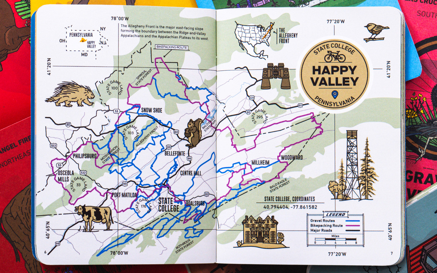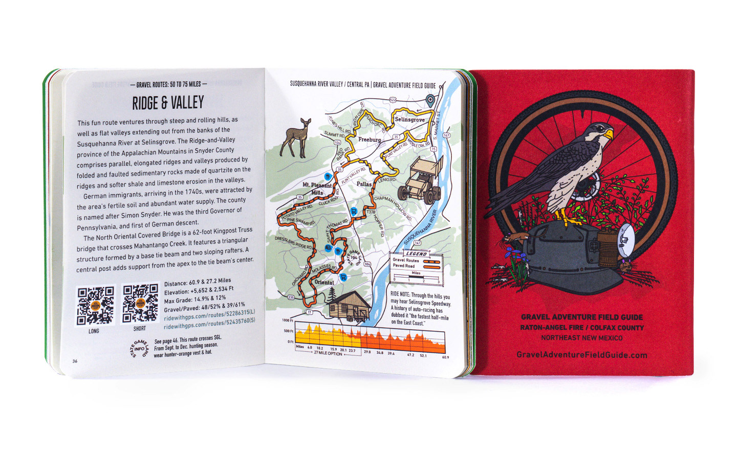 Gravel Adventure Field Guides are pocket-sized, analog books that link to digital GPS routes. The books feature bicycle gravel routes, art, culture and local history.